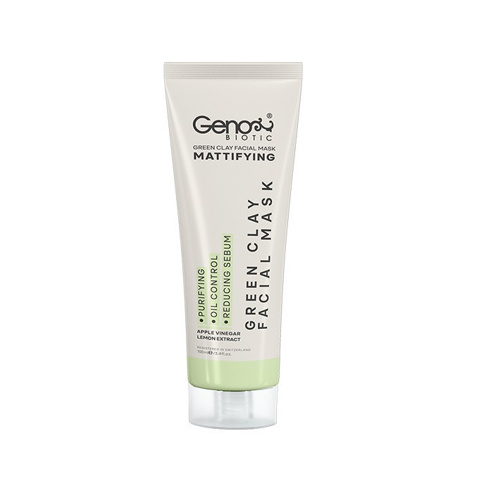 ماسک صورت و گردن خاک رس سبز ژنوبایوتیک حاوی خاک رس، سرکه سیب و عصاره لیمو میباشد. و مناسب افراد با پوست های آکنهای, مختلط و چرب است.