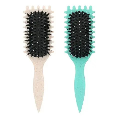 ✔️مناسب برای استایل و حالت دهی موی فر طراحی دو طرفه شیار با اندازه های متفات برای ✔️ تعریف فرهای ریز تر یا درشت تر ✔️ طراحی انتهای باریک دسته برس برای تقسیم بندی راحت تر مو