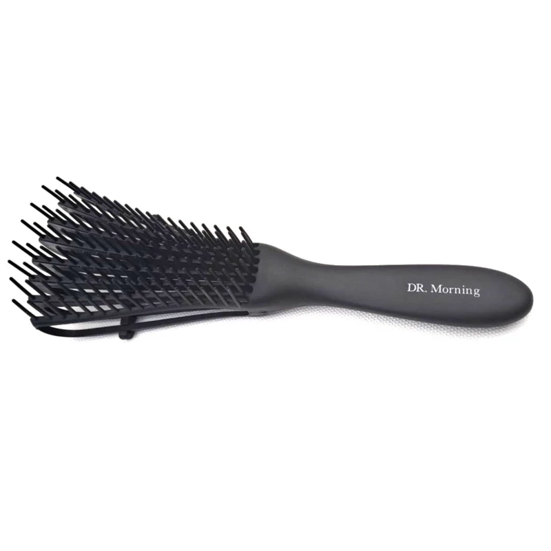 برس گره بازکن فلکسی دکتر مورنینگ مناسب برای باز کردن گره های موهای فر درشت و ریز و موهای مجعد دار میباشد بسیار خوش دست و محکم میباشد.هشت ردیف باریک دارد که با یک نوار بهم متصل میشود هم میتوانید از این نوار استفاده کنید هم میتوانید نوار را بر دارید نواری که روی شانه قفل شده است از قسمت پشت شانه دو محل دارد برای تنظیم کردن این برس متناسب با موهای شما طراحی شده است اگر موهای پر و کوتاهی دارید نوار پشتی برس را بالا تنظیم کنید اگر موهای بلند و ضخیم دارید نوار پشتی برس را پایین تنظیم کنید