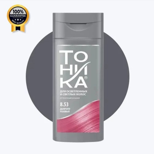 شامپو رنگ تونیکا شماره 8.53 رنگ Smoky Pink رنگساژ بدون نیاز به اکسیدان می باشد. شامپو رنگ تونیکای روسی حاوی رنگدانه های بسیار غلیظ با قدرت جذب بسیار بالاست و بدون نیاز به اکسیدان بر روی موهای دکلره شده جذب شده و ماندگاری بسیار بالایی را فراهم می کند. شامپو رنگ فانتزی توهیکا بر روی موهای روشن تر از پایه 7 تنها رفله ای از رنگ ایجاد می کند و بهتری است برای دریافت نتیجه بهتر بر رویموهای دکلره شده استفاده شود.
